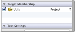 Utils.hを表示した状態で、横のインスペクタの「Target Membership」欄のチェックボックスをONにします。